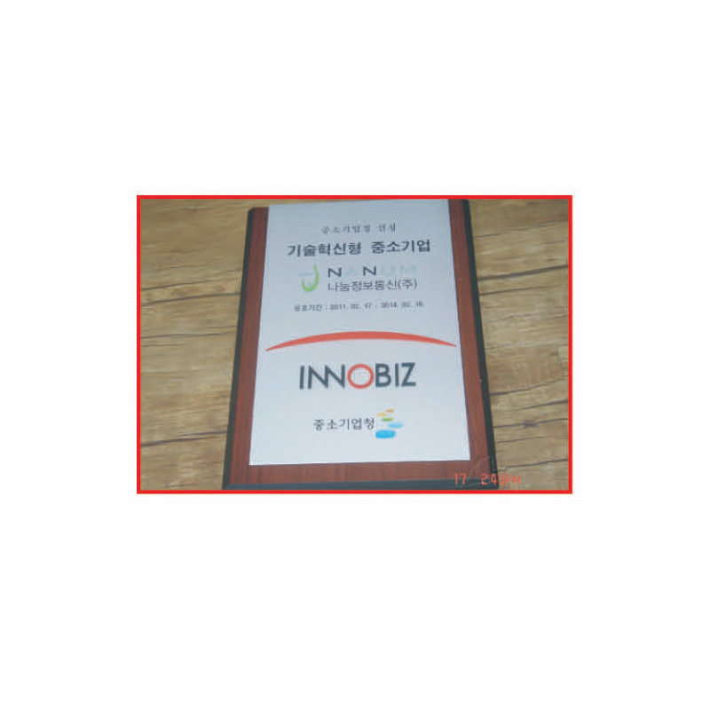 이노비즈인증현판(알미늄+나무)