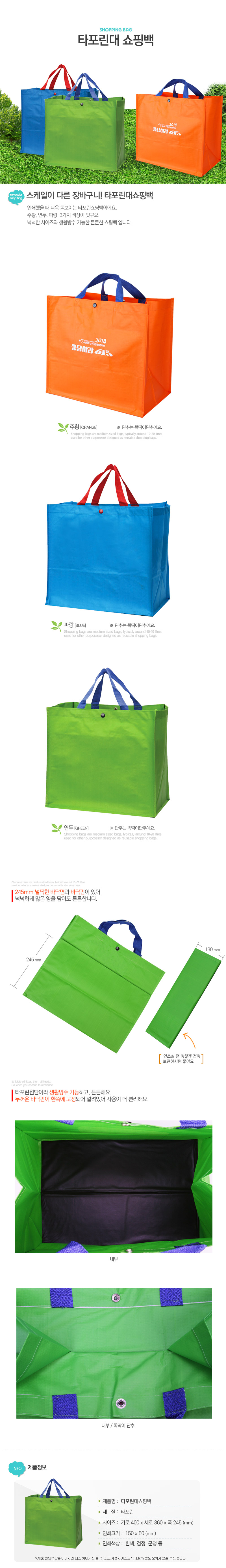 •Size: 400X360X245mm •주황,하늘,연두 •인쇄비별도문의 ※ 사이즈는 ±2cm정도 오차가 있을 수 있습니다.