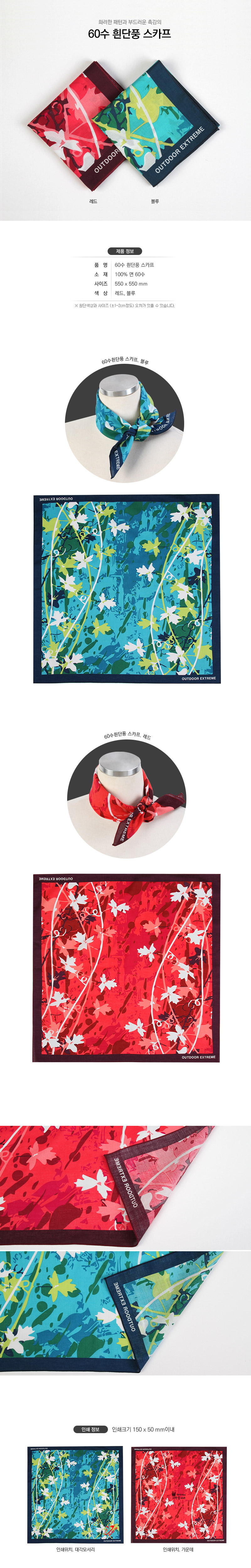•Size: 550X550mm/60수 •색상:블루,레드 ※ 사이즈는 ±2cm정도 오차가 있을 수 있습니다.