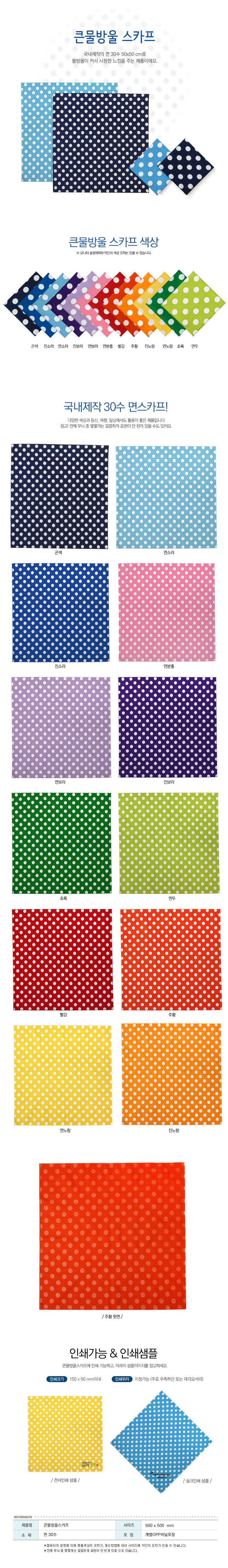 •500×500mm / 30수 • 초록, 연두, 빨강, 주황, 진노, 연노, 곤색, 진소, 연소, 진보, 연보, 분홍 ※ 사이즈는 ±2cm정도 오차가 있을 수 있습니다.