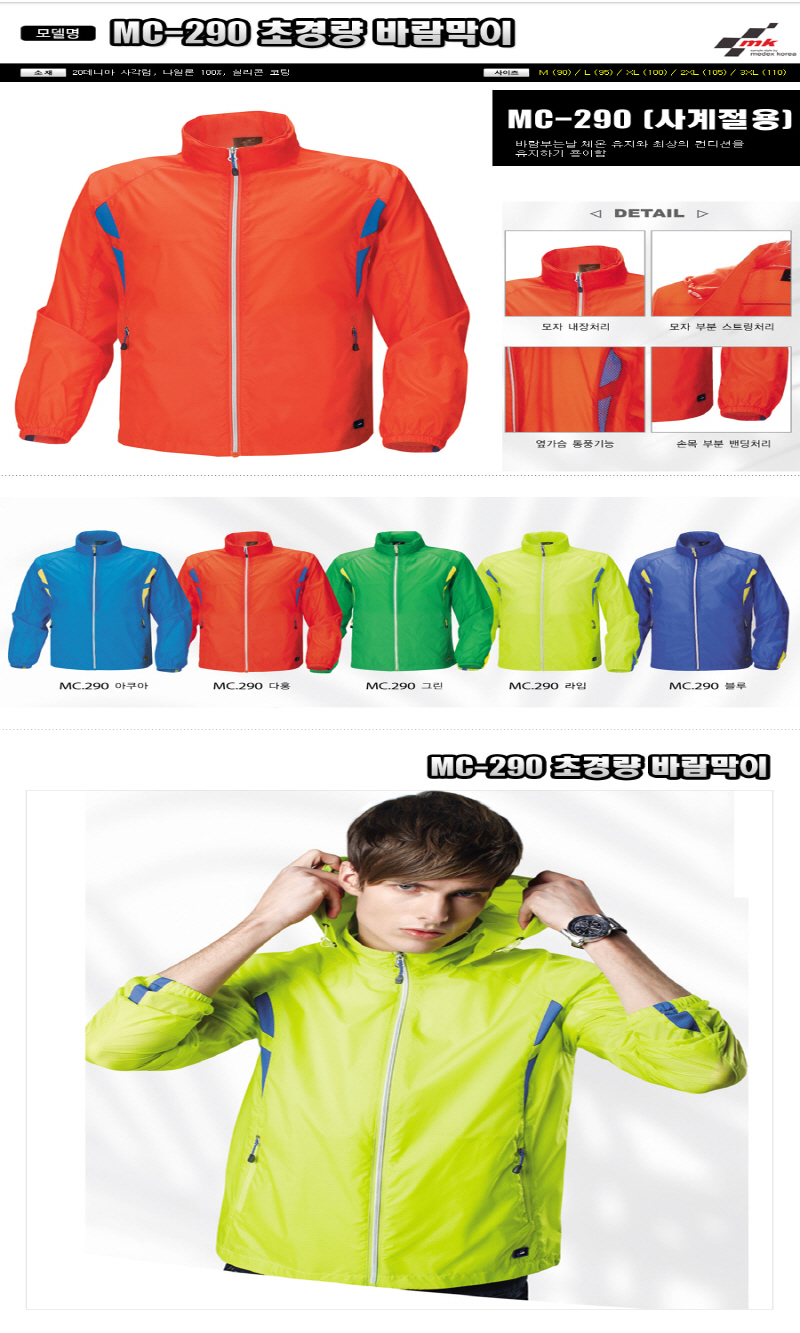 •Size : M, L, XL, 2XL, 3XL •소재 : 20데니아 사각립, 나일론 100%, 실리톤 코팅 ※단가변동 있을 수 있습니다. 제품 색상은 인쇄된 것이므로 실제 제품과 다소 차이가 있을 수 있습니다. MC-290