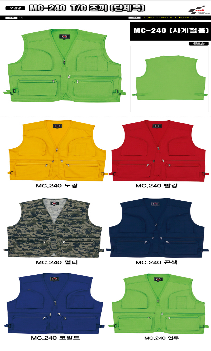 MC-240 •Size : M, L, XL, 2XL, 3XL •소재 : T/C ※단가변동 있을 수 있습니다. 제품 색상은 인쇄된 것이므로 실제 제품과 다소 차이가 있을 수 있습니다.