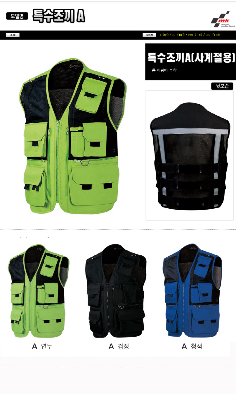 •Size : L, XL, 2XL, 3XL 등 야광띠 부착 ※단가변동 있을 수 있습니다. 제품 색상은 인쇄된 것이므로 실제 제품과 다소 차이가 있을 수 있습니다.