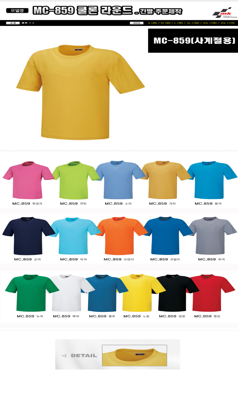 •Size : S, M, L, XL, 2XL, 3XL •소재 : 쿨론 P.K ※단가변동 있을 수 있습니다. 제품 색상은 인쇄된 것이므로 실제 제품과 다소 차이가 있을 수 있습니다. MC-859