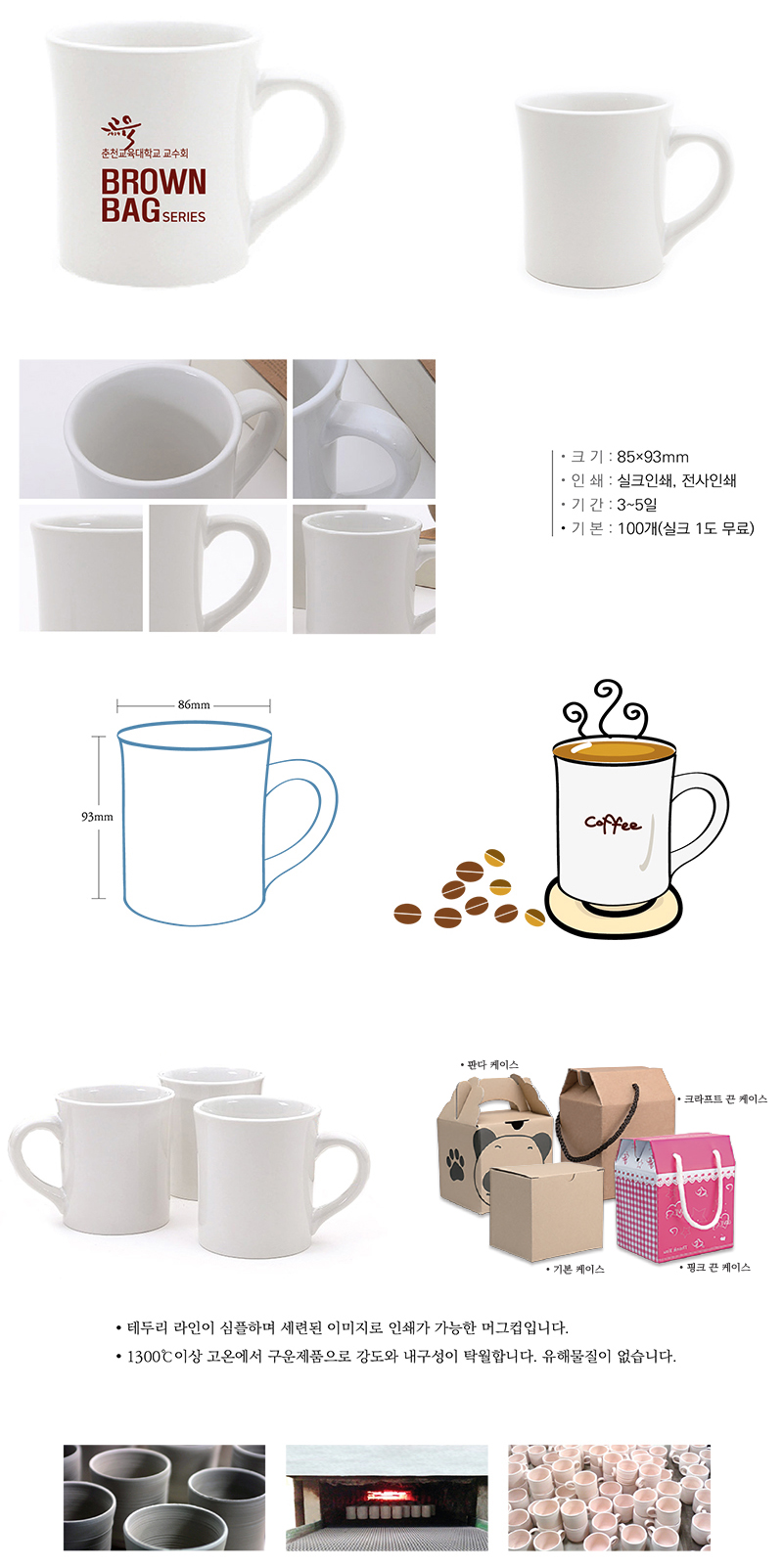 •기 본 : 100개 이상 •Size : 86Øx93mm ※ 1도인쇄 포함 / 2도이상 칼라인쇄 별도 문의