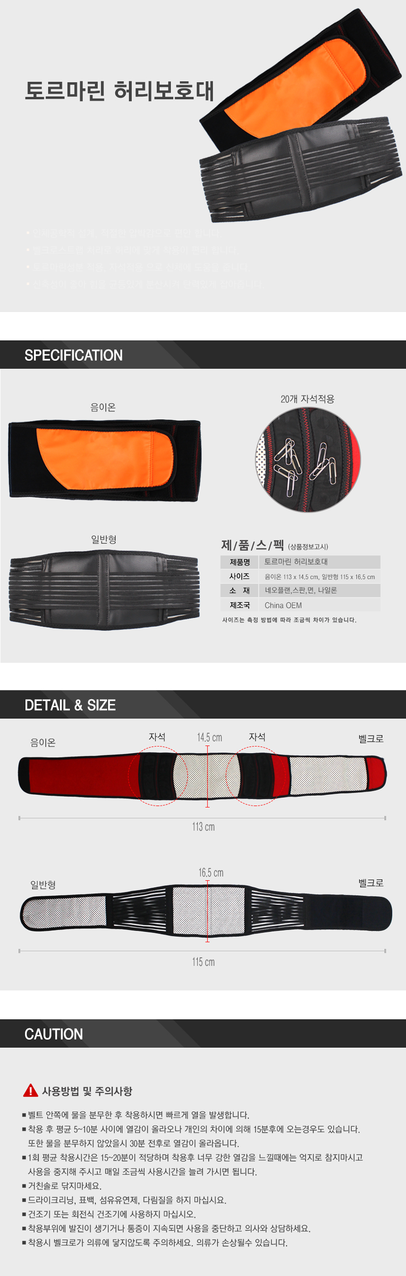 토르마린 일반 허리보호대