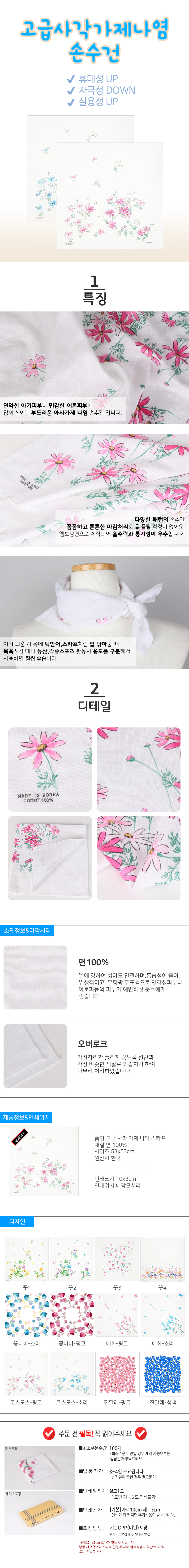 고급사각 가제나염 스카프