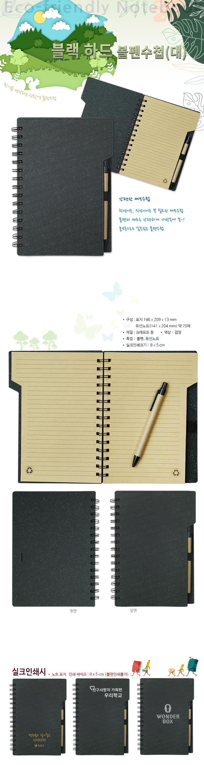 • SIZE: 146x209x13mm • 유선노트 약70매/기본 200개
