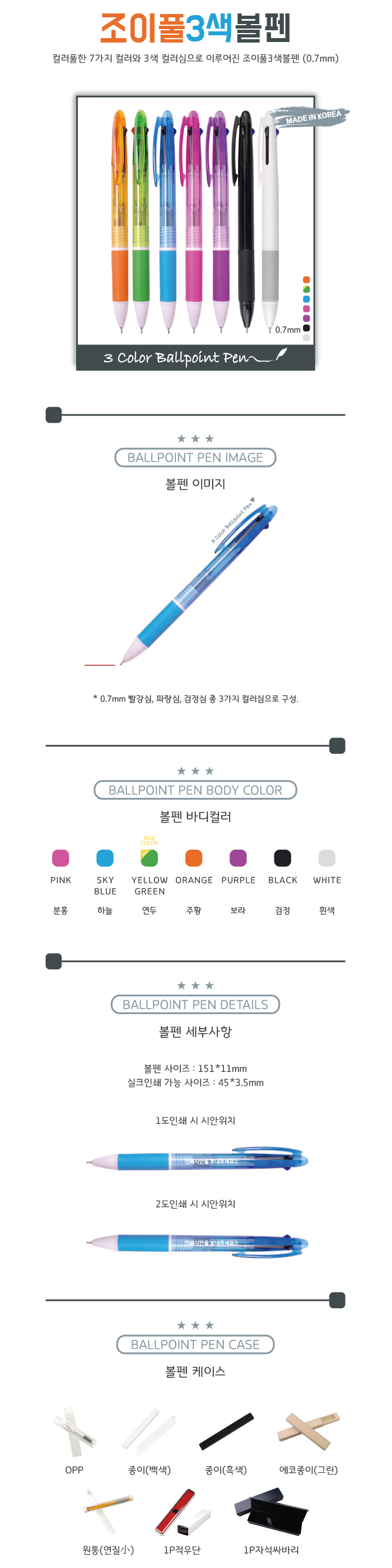컬러풀한 7가지 컬러와 3색 컬러심으로 이루어진 조이풀3색볼펜